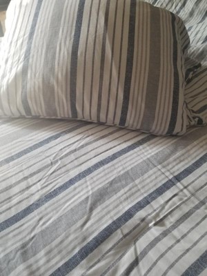 Conrad comforter set from Stone Cottage brings soft sateen cotton materials into the bedroom. This timeless and always fresh, a slate blue and gray on white shirting stripe is a simple and stylish update for any bedroom. The traditional elegance of the comforter pattern has a self reverse. Scaled up in size for bigger impact, this casual stripe offers a relaxed and inviting look that is perfect for any season.