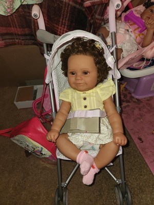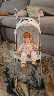 A: The stroller features a two-point harness to keep dolls snug and secure during play.