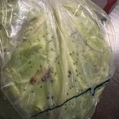 There were black spots all over the cabbage I received. Pick up in the evening. Didn’t see it clearly till I got home to put it in the fridge.