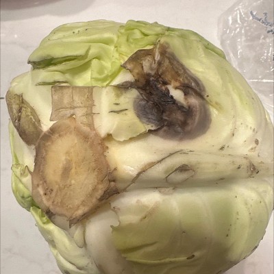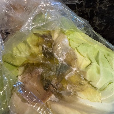 Spoiled cabbage delivered through drive-up on Thanksgiving eve. I have NEVER seen rotton cabbage to this degree in my life that was sold to a customer. Both items were in the same condition and after trying to cut off the spoiled parts, I ended up with 2 cups of cabbage. Do better Target!