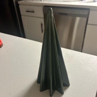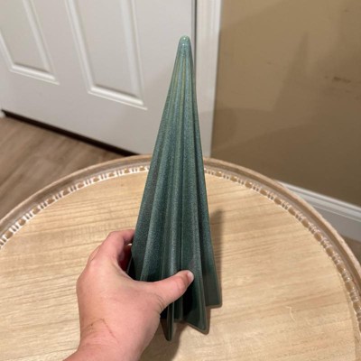 [This review was collected as part of a promotion.] I am obsessed with this modern, decorative tree and I cannot believe it was so inexpensive. What a beautiful and simplistic design. It is such a versatile decoration that will be perfect for the holiday season. The forest green color is beautiful. I have zero complaints about this ceramic tree. I also added a picture including my hand for reference in the size. I received an incentive to write this review.