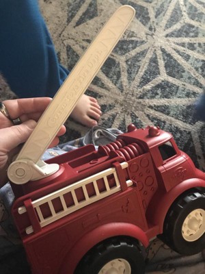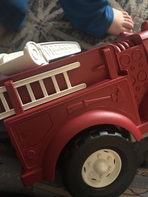 [This review was collected as part of a promotion.] This is a wonderful, durable toy that appeals to a broad range of ages. While they use the fire truck differently, both my 1 year old and 3 year old enjoy it immensely. The older of the two primarily uses it for imaginative play, while the younger enjoys making it roll and crash into things. Neither one is gentle with toys and this has stood up to everything they've thrown at it (literally). I love that it prompted a conversation about recycling and all the amazing ways you can reuse items when applying your imagination. My 3 year old was fascinated by the notion that the fire truck was constructed using discarded milk bottles. I love a toy with a lesson! As for the truck itself. I appreciate its size and that of its parts. It makes it wieldable and safe for both of my children. My son is fascinated by the lifelike quality of the ladder that pivots and rotates. The additional two ladders improve upon the experience. He likes to use them as an extension of the main ladder or for smaller jobs. I like that they have a designated storage space and that they cannot be removed by my youngest without assistance. The details provided by the impressions on the vehicle are impressive with an axe, dials, gauges, hoses, etc. We have used this both indoors and out and find that it is competent on all surfaces. Best of all, it is dishwasher safe - who's heard of that before?! Brilliant! This aspect removes my worry about mess and whether the job I did was effective.