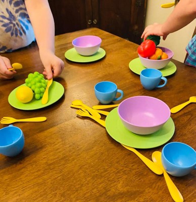Green Toys Kitchen Role Play Dish Set: BPA-Free Plastic with Plates, Cups, & Dishes 24 Pieces for Creative Play