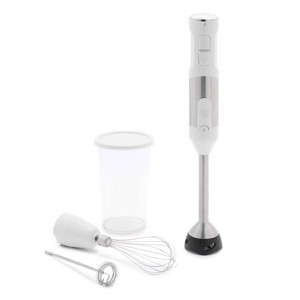 Get three different appliances all in one with this handy stick blender! The powerful 500-watt motor blends food in seconds and the protective blade guard keeps your cookware from getting scratched or damaged. Designed to save drawer and counter-space, this hard-working hand blender comes with three removable attachments so you can blend, froth, and whisk faster and easier. Whisk eggs, batters, sauces, dressings, whipped cream, and more. Create fluffy foam for coffees, cappuccinos, and desserts, or add volume and thickness to soups and omelets. Transform fruits, veggies, and other ingredients into a smooth texture for perfectly pureed smoothies, batters, soups, and so much more. Plus, the variable-speed dial gives you precise control no matter what you’re mixing. Attachments are also dishwasher safe for even easier cleaning.
