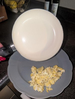 [This review was collected as part of a promotion.] Small, easy to clean pan ... Perfect for scrambling a few eggs or making small pancakes. This pan heats quickly and evenly, so your food won't burn. Inexpensive and cute; easy to store. ** I prefer to hand wash, due to some of the paint coming off, in the dishwasher.