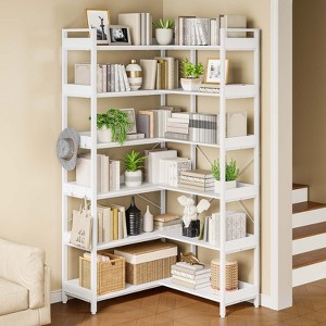 Greenstell Multi-layer reversible corner bookshelf with multiple hooks, space-saving bookshelf
