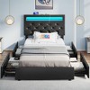 Greenstell Bed Frame with Adjustable Upholstered Headboard and Storage 4 Drawers Charging Station & LED Lights Wood