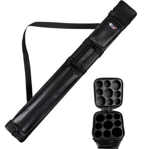 Premium Material: The hard pool cue stick case is crafted with a durable leatherette covering and holds three butts and six shafts; it fits three two-piece cues measuring up to 58 inches