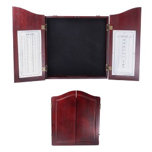 - Scoreboard & Out-Chalk: The dartboard cabinet has a white dry-erase scoreboard and a dart out chart inside of the doors with a smooth surface which allows for easy writing and erasing; it also has built-in slots for the storage of your darts on the inside of the cabinet doors; the cabinet backboard has black felt