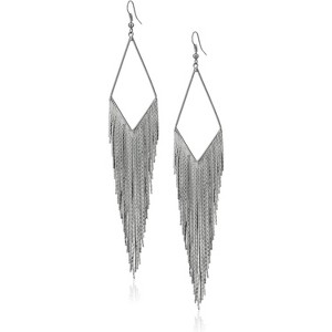 - Linear drop earrings featuring open diamond shape with angled fringe beneath
