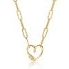 Classy 14K Gold Plated Cubic Zirconia Charm Necklace. This stylish item features interesting heart charm design that is accented with small clear round cubic zirconia stones placed on one side of the heart charm. The charm is connected to a paper clip link chain on both sides. Crafted with 14K Gold Plating and secure with a screw lock closure. Perfect piece of jewelry for all combinations. These also make a sensational gift for a special birthday or occasion.
