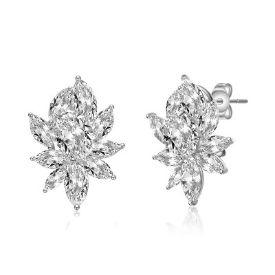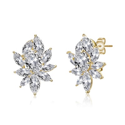 Sterling Silver 14k Gold Plated Cubic Zirconia Corsage Flower Stud Earrings. These dazzling 14k gold plated sterling silver stud earrings feature a gorgeous cluster of cubic zirconia secured in prong settings, offering a unique design inspired by floral bouquets and romantic corsages. Butterfly backs keep these pretty earrings secure, making them easy to place on and remove from the ears when worn. Gift these earrings to any loved one, or treat yourself to total glamor.