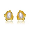 Guili Sterling Silver 14K Gold Plated Stud Earrings with White Freshwater Pearl in an Elegant Organic Wave Design for a Chic and Timeless Look