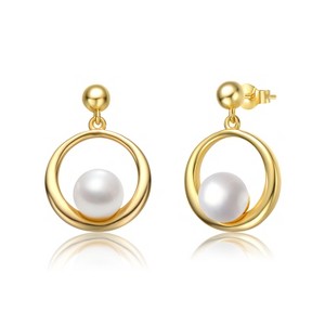 Guili Sterling Silver Earrings with 14K Yellow Gold Plating, White Freshwater Pearl, and Eternity Circle Halo Design for a Radiant Look