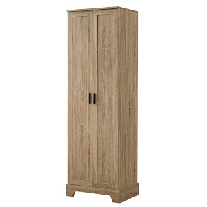 Gulches 23 in W x 17 in D x 71 in H Brown MDF Bathroom Storage Cabinets with Two Doors Adjustable Shelf Anti Tip Black Handles 1 Pack