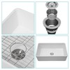 Gulches 33" white ceramic farmhouse sink combines durability and elegance. Crafted from high-strength ceramic, it resists heat, chipping, scratches, and discoloration. Easy to clean with soapy water, it stain-resistant. Sound-deadening material reduces noise. Includes 304 stainless steel dish grid and basket strainer. Fits seamlessly with any decor.