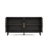 Gulches 60.3" Decorative 4-Door Cabinet - Black Wood+Metal+Painted Glass Buffet, Artistic Storage Cabinet for Entryway/Living Room/Bedroom/Dining Room