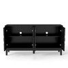 - 4-Door Storage: Four closed doors hide clutter while maintaining a sleek mid-century aesthetic, paired with elegant wood grain.