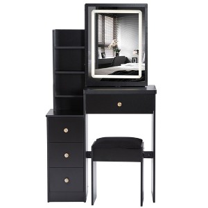 Enhance your small bedroom with the Compact Touch Vanity Set, expertly designed to fit limited spaces without compromising on style or functionality. Measuring 29.2" in length and 50.4" in height, this vanity set features a touch-control sliding mirror with adjustable lighting. Effortlessly switch between three light colors and adjust brightness to suit your mood. The multi-layer design offers ample storage for your beauty essentials, while the included cushioned stool ensures comfort and convenience. Perfect for those seeking a chic and practical solution for compact living areas.