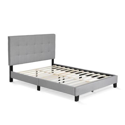 Transform your bedroom into a modern sanctuary with the Gulches dark Gray upholstered queen platform bed This sleek frame features a soft linen fabric headboard with deep button tufting that delivers both sophisticated style and cushioned comfort for sitting up to read or relax The sturdy wooden slat foundation provides excellent support and ventilation for your existing mattress while eliminating the need for a box spring The entire frame is wrapped in smooth dark Gray upholstery that resists daily wear and adds a rich neutral touch to any decor The compact carton contains headboard footboard side rails wooden slats center support legs and all required hardware along with clear illustrated instructions that let two people finish assembly in about thirty minutes Extra bolts and tools tuck neatly into the non woven pocket behind the headboard so nothing gets lost The finished bed measures 60 inches wide 80 inches long and 42 inches high offering generous under bed clearance for storage bins suitcases or seasonal items The deep dark Gray shade coordinates effortlessly with white black or natural wood furniture making it simple to refresh teens rooms guest suites or master bedrooms Enjoy reliable support lasting durability and charming modern style with this complete upholstered platform bed solution