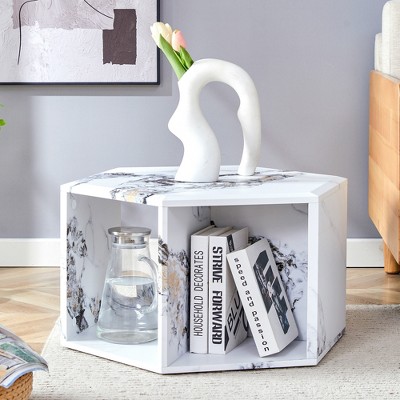 Minimalist white patterns hexagonal Coffee Table Set Hexagonal MDF coffee table characteristic pattern stickers multi-hole design to give more storage space