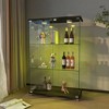 This modern 2-door glass display cabinet is a perfect blend of style and functionality, tailored for showcasing your cherished collections and organizing daily essentials. Measuring 47.9"H x 32.09"L x 14.37"W, it features 3 sturdy 5mm-thick tempered glass shelves, each capable of holding up to 45 lbs to accommodate models, action figures, medals, wine bottles, artworks, and more. The enclosed glass doors provide excellent dust protection, keeping your items clean and well-preserved, while the 4 lockable caster wheels enable easy movement and stable positioning in living rooms, bedrooms, offices, or even shopping centers. Constructed with durable MDF top and bottom panels and reinforced by fixed accessories, the cabinet ensures long-lasting stability for daily use. Its sleek transparent+black design effortlessly matches various modern home decors, adding an elegant touch to any space. Additionally, the smooth glass surfaces are easy to wipe clean, and the quick-assembly design allows for hassle-free setup without complex tools or operations, making it a practical and stylish storage solution for collectors and home organizers alike.