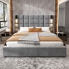Gulches Queen Size Upholstered Bed Frame with Wide Padded Headboard, Plush Velvet Fabric, Wooden Support Bars & Legs, Gray