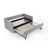 Gulches Twin Size Upholstered Daybed with Trundle Vertical Stripes Linen Fabric Grey for Bedroom Living Room Office Cafe