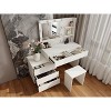 This vanity table enhances makeup precision with a large mirror, often equipped with LED lights to ensure clear visibility in any lighting. It offers ample storage via drawers and compartments, keeping beauty essentials organized and accessible. The sleek, modern design with a clean finish complements various room styles, while its compact size saves space¡ªperfect for small bedrooms. A matching stool provides comfort, turning daily grooming into a stylish, hassle-free ritual.