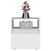 Elevate your space with the Gulches White Nightstand, a perfect fusion of style and practicality. Standing at 20.8 inches high, this versatile piece features a spacious handle-free drawer with smooth ball-bearing sliders for effortless access. The modern caster wheels enhance mobility while adding a sleek touch. Ideal for bedrooms, living rooms, or home offices, this compact nightstand maximizes storage with a divided middle shelf and a drawer measuring 15.5 inches wide by 5.5 inches high. Crafted from high-quality laminated particleboard, it seamlessly complements any decor style while providing essential functionality.