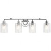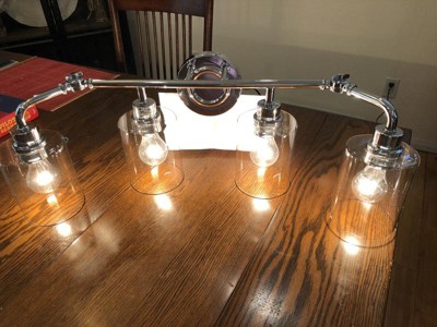 [This review was collected as part of a promotion.] This bathroom vanity light bar is very cool and versatile. The four lights have clear glass canister shades and the fixture itself is shiny chrome which gives the arrangement an eloquent and contemporary look. The bar articulates in horizontal arcs so the end lights can be adjusted at an infinite number of positions if your bathroom is tight on space or you just want something other than a straight arrangement. The clear glass canisters show off the light bulb inside so you can use frosted or clear decorative bulbs which can add to the overall look. Whatever bulbs are used, this vanity light provides enough illumination to see great detail while you shave, clean or apply makeup. Installing is a breeze on any existing electrical box over your sink and mirror. All hardware necessary is included including wire nuts. You’ll love the way you look with this decorative lighting fixture.