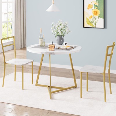 • Space-Saving Round Dining Set: Featuring a 31.4" round tabletop and two fully tuckable chairs, this compact 3-piece set is ideal for apartments, condos and small kitchens. The clever nesting design maximizes floor space while maintaining stylish comfort for daily use.