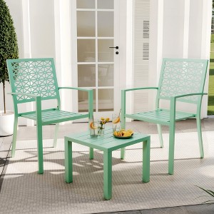 GustoWave 3-Piece Outdoor Seating Set, Stackable Modern Steel Furniture for Porch, Garden w/ 2 Chairs, Table, Geometric Decor