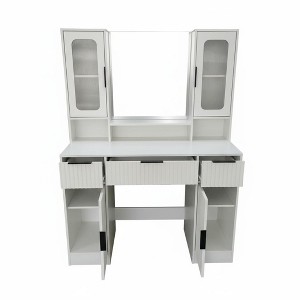 Add style and organization to your bedroom with this makeup vanity desk set. Featuring a spacious mirror and three drawers, this modern dressing table offers convenient storage and a sleek, contemporary look—perfect for any bedroom or dressing room.