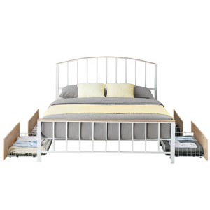GustoWave Modern Metal Bed Frame with 4 Storage Drawers, Classic Metal Platform Bed Frame, No Noise