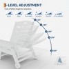 This outdoor chaise lounge is designed for superior comfort and durability. It features a 5-position adjustable backrest for personalized reclining and a durable HDPE construction that resists fading and cracking from sun exposure. Designed with convenient wheels for easy mobility and an integrated cup holder for convenience, it offers versatile seating for any activity. The robust frame supports up to 450 pounds, while its weather-resistant material ensures long-lasting performance in any outdoor environment. Easy to assemble in under 30 minutes, its practical design includes an extra-wide seat for spacious lounging by the pool, on the patio, or in the garden.