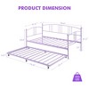 This versatile metal daybed (41.6''D*78.8''W*37.2''H) combines compact seating with hidden twin trundle for effortless guest accommodation. The reinforced steel slat system provides sturdy mattress support (no box spring needed) up to 350lbs while the arched headboard adds stylish flair to any room.