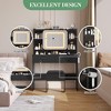 - Ample Storage Space: Maximize your organization with a desktop and 3 drawers, many open storage shelves and a convenient hair dryer holder. Effortlessly store and display your perfumes, nail polish, hair accessories, and cosmetics. There is a charging board with 2 standard plug sockets and 2 USB ports on the vanity set for your devices and beauty tools.
