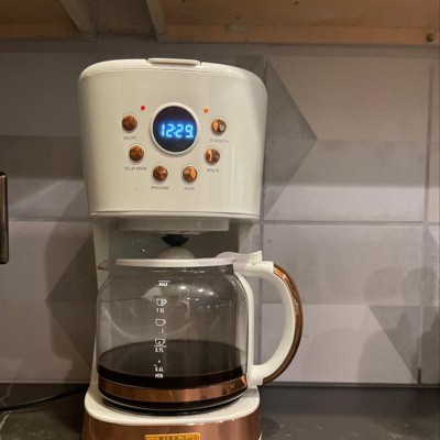 Haden Heritage 12-Cup Programmable Drip Coffee Maker - Black/Copper: BPA-Free, 900W, Cone Filter, Ground Espresso Use