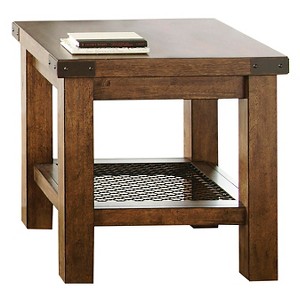Set your living room up right with the Hadley End Table - Brown. This sturdy side table is perfect for keeping a lamp, a plant or a few books. The wire on the shelf adds a bit of texture and visual interest to this accent table. Place this table next to a favorite chair or couch and you'll be set.