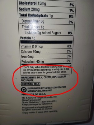 I hate deceptive labeling!!! Bought because online description said ingredients were ONLY milk and cream, then find it contains Dipotassium phosphate!! Stop putting fraudulent labels to lure ppl to buy this chemical crap I returned and won't buy again!