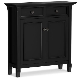 Transform your entryway with the WyndenHall Halifax Solid Wood Storage Cabinet. This versatile piece combines timeless style and practical functionality, perfect for busy families looking to organize their home. Crafted from durable solid pine wood, the cabinet features two spacious drawers and a double-door compartment with adjustable shelves, offering ample storage for shoes, bags, and everyday essentials. The rich finish and classic crown molding add warmth and character to any space, while the compact 36" x 12" x 36" size fits effortlessly in hallways or living areas. Built to last with sustainable materials and a low-VOC finish, this cabinet brings both beauty and eco-friendly design to your home.
