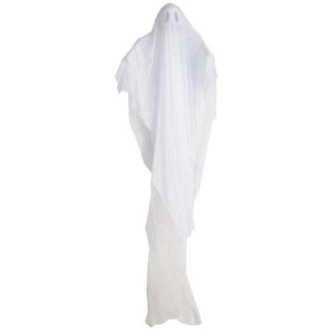 Ghostly figure has a long white robe with draping white fabric and a face showing through the fabric!With each breath of wind, the figure moves in aneerie way!Prop is 7feet tall and 32 inches wide. Care Instructions: Hand wash cold water with mild soap. Do not bleach. Tumble dry low. Do not iron. Do not dry clean. For best results hang or lay flat to dry.
