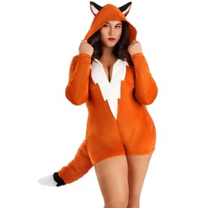 This is an exclusive Women's Plus Size Fierce Fox Costume Romper.
