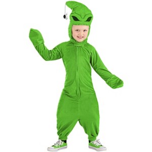 This Halloween, let your toddler shine in the colorful chaos of the Deluxe Green Disney Oogie Boogie Costume! Inspired by Disney Tim Burton's The Nightmare Before Christmas, this vibrant costume brings the playful, larger-than-life personality of Oogie Boogie to life. Perfect for trick-or-treating or Halloween parties, your little one will stand out with the bold green design and naughty style. It's an epic choice for those who want more fun and color in their Halloween celebrations!Designed with both comfort and flair in mind, this soft velour jumpsuit is stuffed to recreate Oogie Boogie's iconic baggy shape. The rib-knit ankles and lined interior keep your child cozy all night. A front zipper and neck fastener make it easy to put on, and the snap-on mitts are perfect for keeping their hands warm or grabbing a quick snack. Get ready for a night of Halloween highlights with this delightful costume!