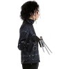 Unleash your inner Edward Scissorhands this Halloween with our Men's Classic Edward Scissorhands Costume! Officially licensed, this ensemble captures the haunting elegance of the legendary character, perfect for adding a touch of dark sophistication to your spooky season celebrations. Crafted from 100% polyester jersey knit fabric, mesh, and synthetic hair, the costume is designed for comfort and an authentic appearance. The shirt, featuring a hook & loop fastener at the back of the stand-up collar, is adorned with an all-over print of buckles, studs, and O-rings, mirroring Edward's iconic look.The transformation is made complete with a wig of synthetic hair on a mesh cap, designed with an elastic back edge to ensure a snug and comfortable fit. Jersey gloves slide easily onto your hands, enhancing the mysterious vibe of the character. But the true essence of Edward Scissorhands comes to life with the costume's unique feature: each stiffened felt scissor blade has an elastic loop at the base, allowing you to slide them over your fingers and recreate the unforgettable scissorhands. Whether you're attending a Halloween party, a themed event, or simply looking to pay homage to a cinematic icon, this Edward Scissorhands costume is your ticket to stepping into the shoes of one of Tim Burton's most beloved characters.