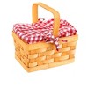 Whether heading to grandmother's house or just holding your lipstick during a night out this Red Gingham Basket handbag the perfect fit. This wood strip basket is topped with cotton gingham fabric. The fabric attaches to the handles with fabric ties and is removable. A zipper opens on the top of the fabric for securely holding items.