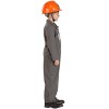 - Gray twill jumpsuit with hook and loop fastener down center front