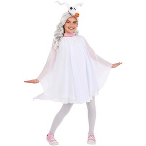 Add a touch of ghostly fun to your child's wardrobe with the Disney Zero Costume Dress! Perfect for Halloween or any day they want to play in style, this costume lets your little one channel the charming ghost dog from Disney's Tim Burton's The Nightmare Before Christmas. The dress features soft chiffon layers that float gracefully as they twirl, all while staying cozy with a jersey knit liner underneath. The poncho style ensures easy wear, making it perfect for busy little spirits.The costume includes a fabric-covered headband with bendable ears, bringing Zero's playful personality to life. The glowing nose adds a whimsical flair, lighting their adventures with a soft, spooky glow. A light pink collar embroidered with "Zero" completes the look, adding a sweet and personalized touch to this enchanting outfit. Whether they're trick-or-treating or just enjoying some imaginative play, this costume will make their day extra special!