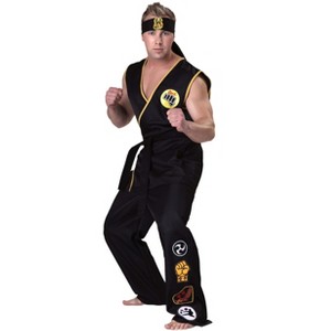 Fun Costumes Karate Kid Cobra Kai Costume:This Adult Cobra Kai Costume Mens is the perfect way to show your love for the Karate Kid. This official karate gi uniform is made of 100% polyester and features a sleeveless black shirt with wrap-around ties at the waist and embroidered Cobra Kai patches on the front and back. The pants have an elastic waist and embroidered patches on the legs.This costume is perfect for Halloween, taekwondo, or karate tournaments. This karate gi is designed to be comfortable and durable. The elastic waistband and drawstring closure make it easy to adjust the fit to your body. The polyester material is lightweight and breathable, making it perfect for long days of practice or tournaments. The embroidered patches add a unique touch to the costume and make it stand out from the crowd.The Adult Cobra Kai Costume Mens is the perfect way to show your love for the Karate Kid. Whether you’re looking for a costume for Halloween, a taekwondo uniform, or a karate gi for tournaments, this costume is sure to make you stand out from the crowd. The lightweight and breathable material will keep you comfortable all day long, and the adjustable waistband and drawstring closure makes it easy to get the perfect fit.When you want to roleplay Karate Kid movie moments, the embroidered Cobra Kai patches on the shirt and pants of our costume means you’ll be sure to make a statement. Show your love for the iconic movie and get your Adult Cobra Kai Costume Mens outfit today!Product Details:100% polyesterWrap around shirt ties at waistPrinted Cobra Kai patches on front and back of shirtPants have elastic waist, patches on legBelt is 2" wide x 100" longHeadband has embroidered patch. About Us:Fun Costumes are exclusively made by us and begin with passion, teamwork, and industry expertise - proof that with the right people even a simple idea can grow into something incredible. We started in a small garage in Minnesota, and now we're creating costumes for people all around the world.